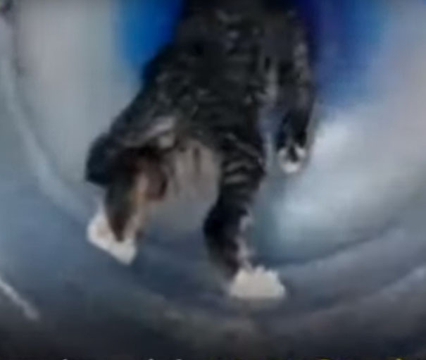 This would be the only thing protecting the young kitten from the blade of the saw they planned on using to cut it free.