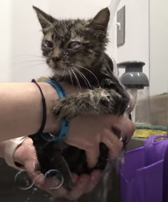 They also spotted the mother cat but would return to get her another day as it was imperative they got to the clinic as quickly as they could because of the kitten’s critical condition. They decided to name her Kenshi.