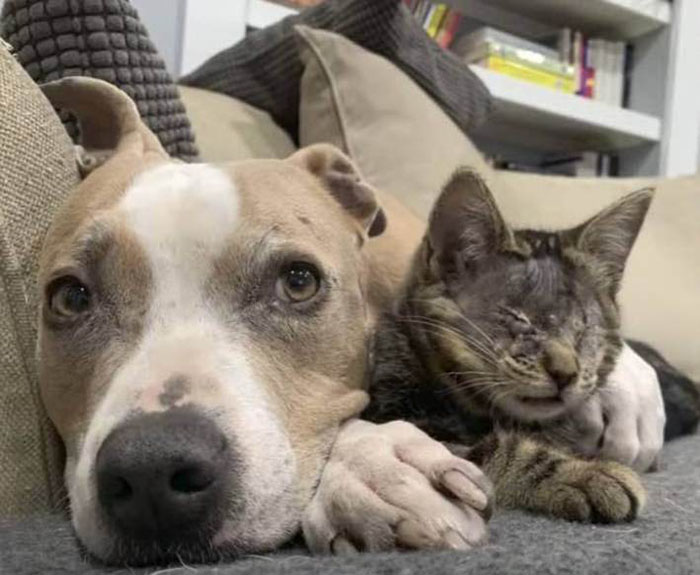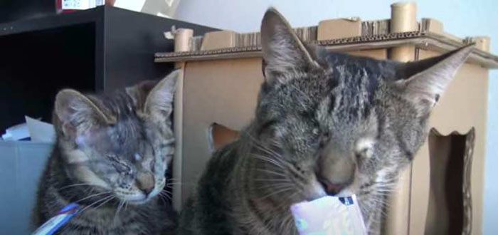 After a full recovery from her operation, Kenshi was also put up for adoption and now lives in a loving home with another blind cat, Charlie, and two dogs.