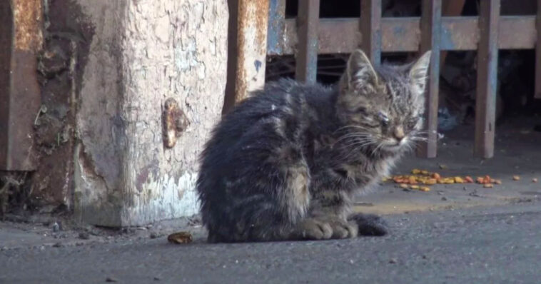 They were told that the mom and two other kittens had been spotted in the area as well. When they arrived the kitten was sitting there alone, it was a very sad sight to see.