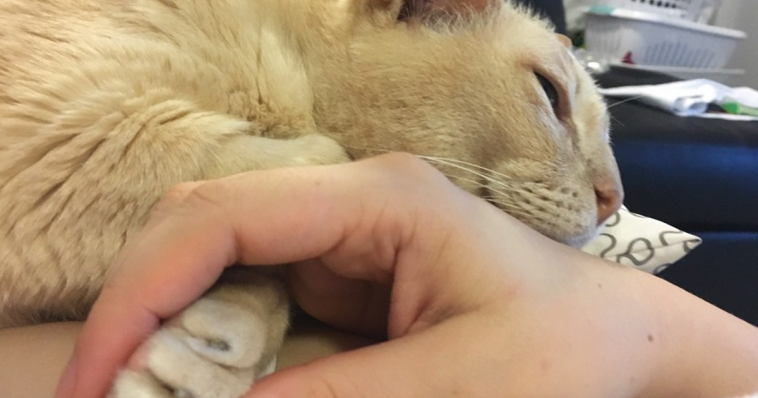 “If I let go [of his paw] he wakes up, meows, and claws my hand back to him… I think we’ve bonded already”