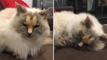 According to the kitty’s owner, despite her angry and grumpy face, Kitzia is a sweet and cute cat who loves playing with everyone. But just like any other cat, she also sometimes expresses a disgust for the world or throws temper tantrums.