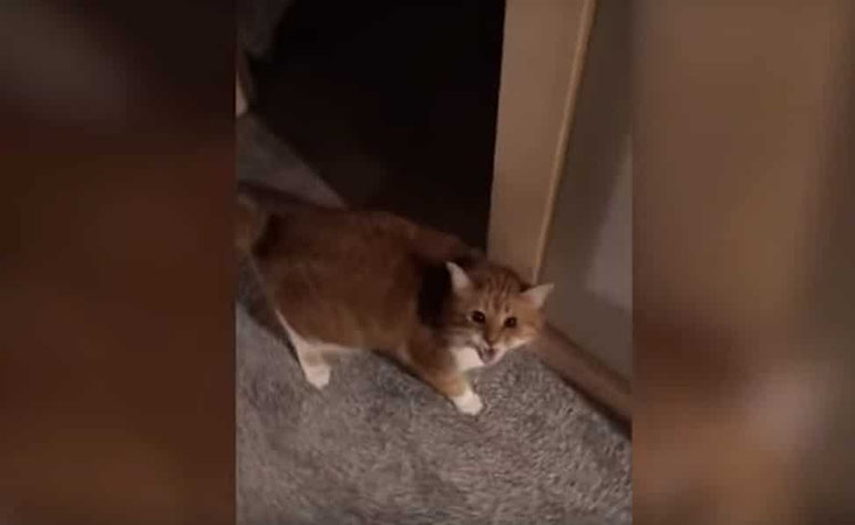 The terrified real estate agent is shaken by the attack and she immediately steps back. The cat then blocks the exit as it continues to meow angrily. Sonnentag tries to talk to the feline at no avail.