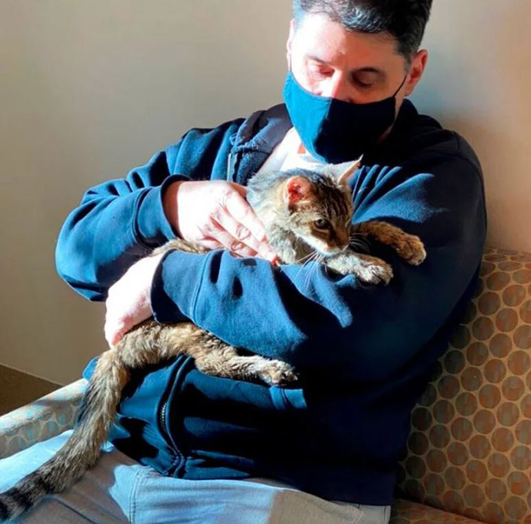 I saw her, I picked her up and she started to purr and it was very emotional. It was nice to have her in my arms again.