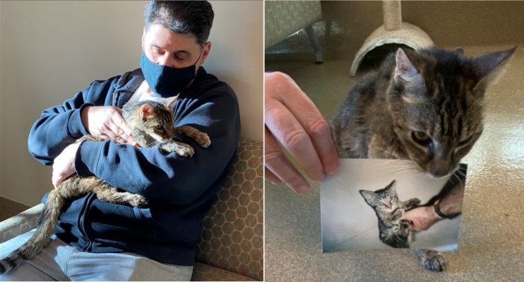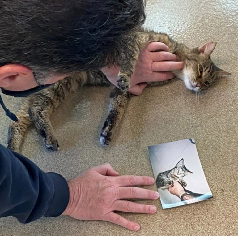 A cat that went astray about 15 years ago has been reunited, older and maybe wiser, with its owner.