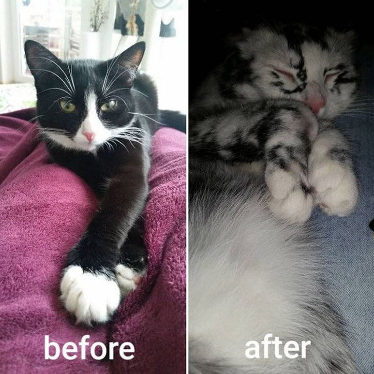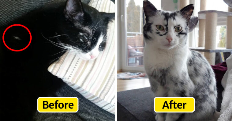 When you have a pet for a long time, you get used to how they look, and can easily recognize them in comparison to any other pets. But imagine that one day your cat or dog suddenly change their look. Nicole Böhm, from Germany, adopted 2 kittens in 2016, and everything was fine until she noticed that something strange was going on with one of them. Elli, who used to be a black-and-white tuxedo cat, started to turn white right before her owner’s eyes.
