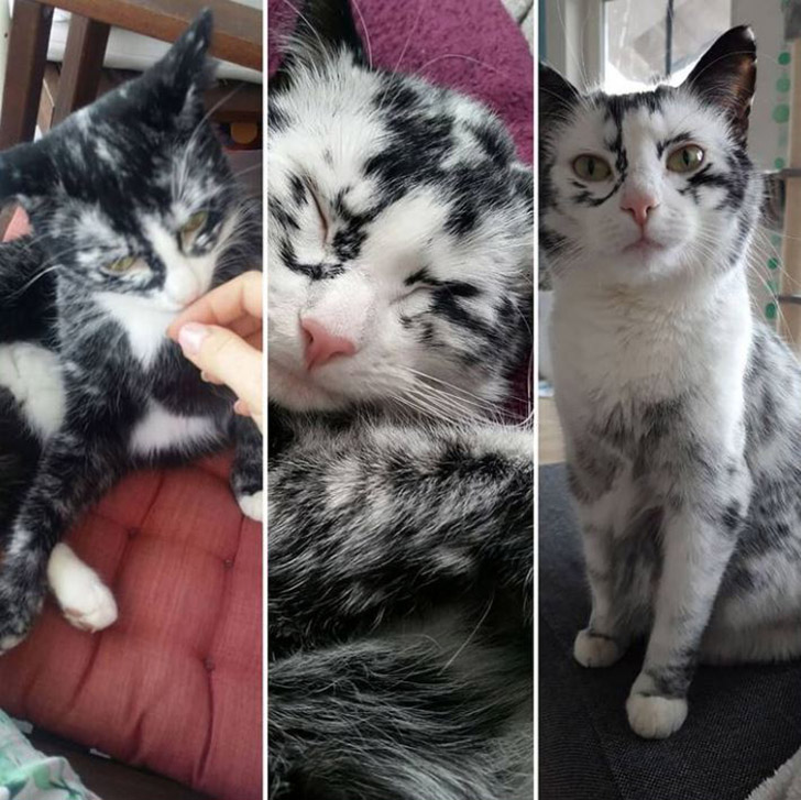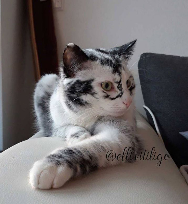 Elli was an ordinary tuxedo cat, until one day her fur suddenly started to turn white.