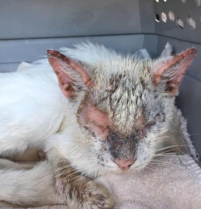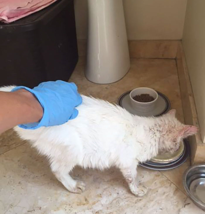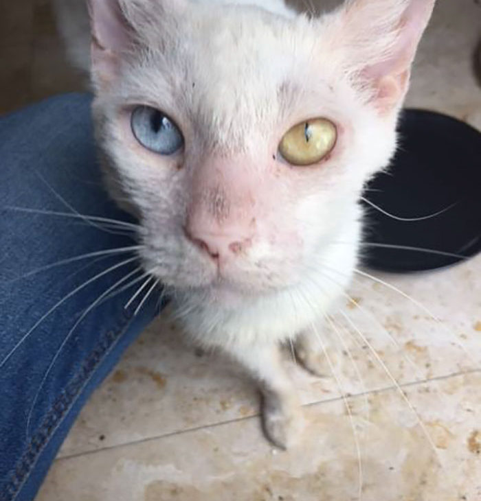 The pretty cat Cotton, the cat, was alone on the streets, starving, disease-ridden and close to death.