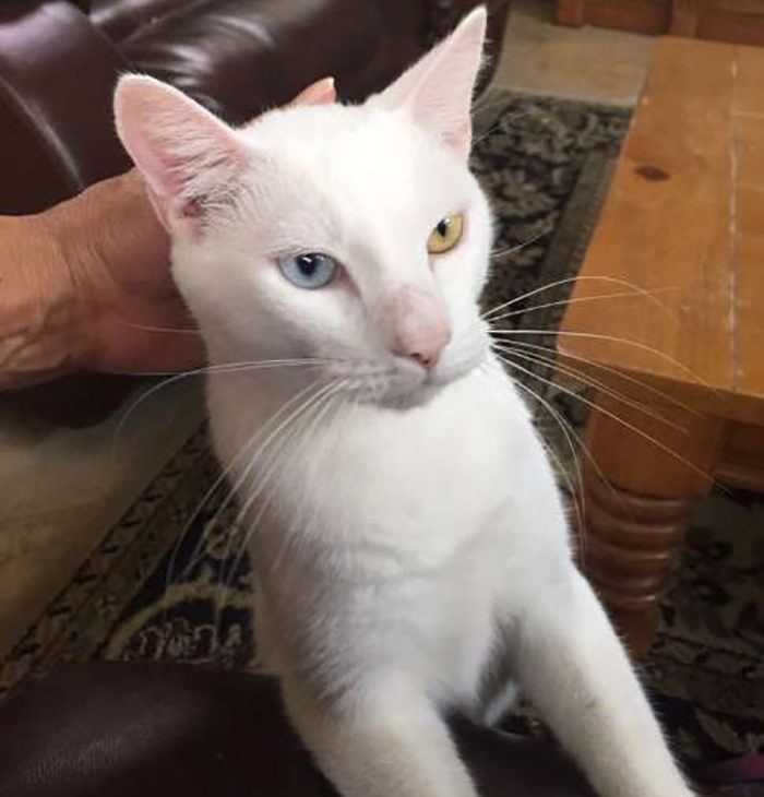Cotton’s transformation from filthy bag-of-bones to a healthy and dashing tomcat was complete with one eye a vivid blue and the other one hazel…