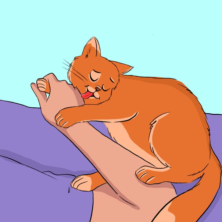 11. Licking your hands isn’t a way to teach you about hygiene. Your cat is trying to tell you about their tender feelings.