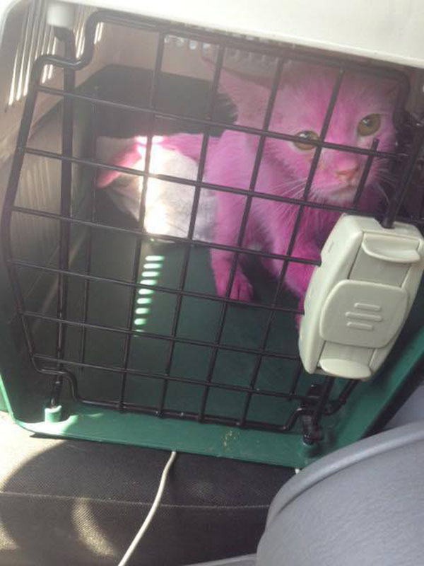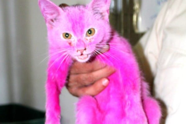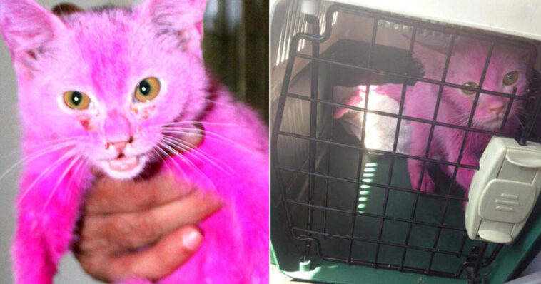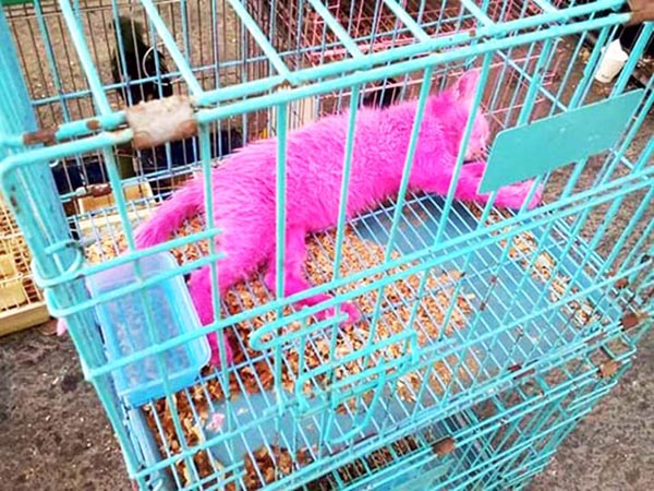 A teenage boy was shocked to find a poor kitten dyed in a shocking shade of pink displayed at Isa Town Market in Bahrain.