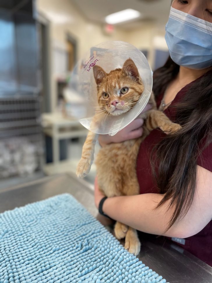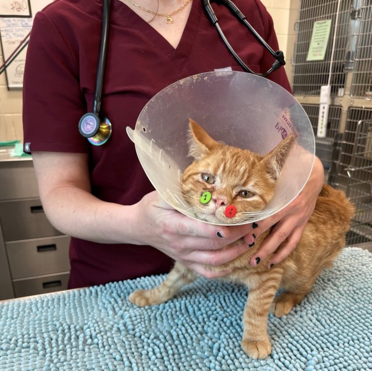 “He has obviously been through and survived a serious trauma, but he has adapted quickly to the sutures that limit the use of his jaw and, through it all, he’s remained an outgoing, playful and really friendly cat,” said Victoria Odynsky, manager at the MSPCA’s Boston adoption center.