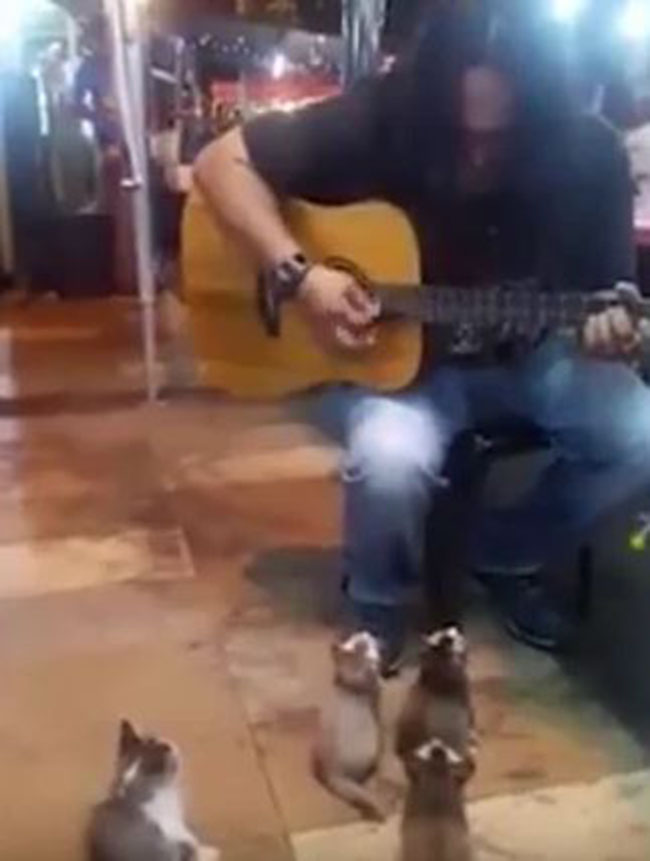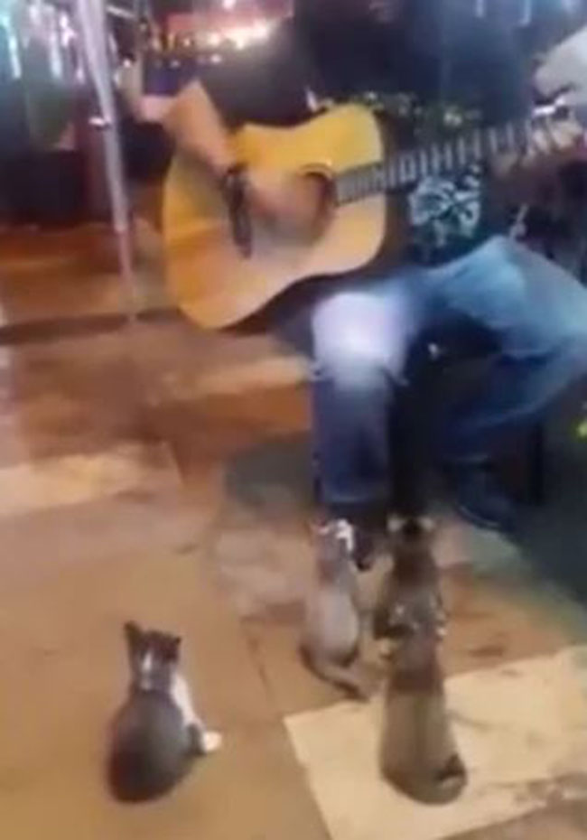 After the musician was finished with his song, he thanked the cute kitty audience for tuning in.