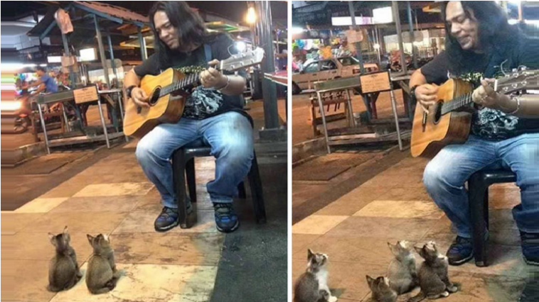 A video shot in our very own Malaysian streets showed a man strumming his guitar while singing to a tune. However, it’s who his audience were that propelled the video to virality.