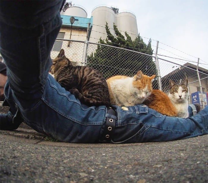 Although Rojiupa is happy to be hanging out with the strays, he is also concerned that they could get into trouble because of his photos. The photographer says that people contact him about their living conditions. Nevertheless, Rojuipa also assures the felines’ new fans that they are safe.