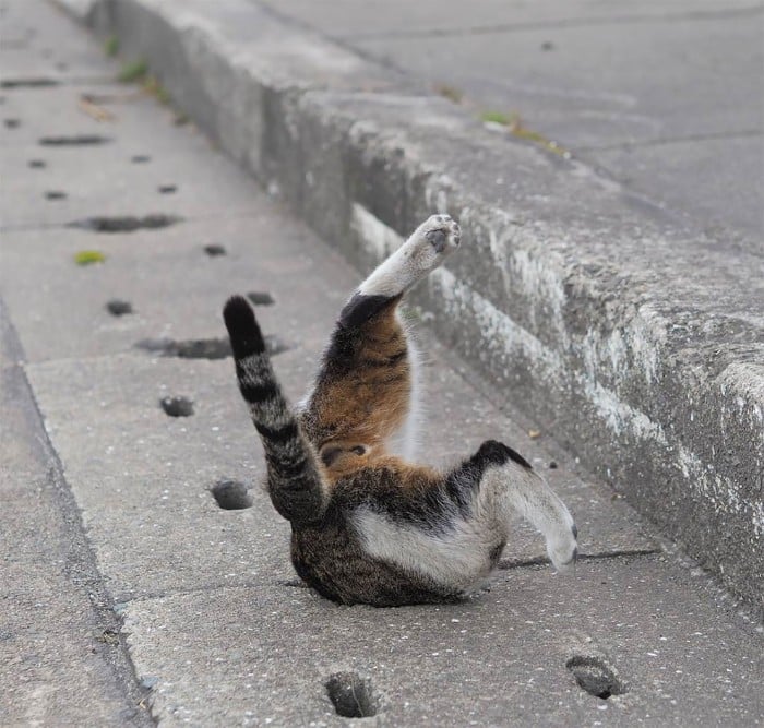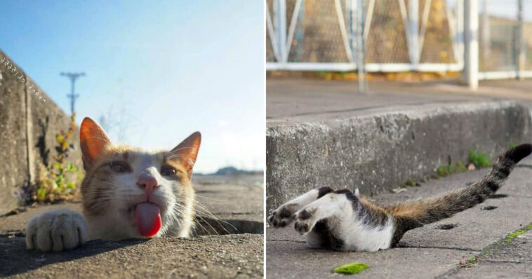 Stray cats are usually misunderstood. These felines survive on the streets and sometimes shy away from people. However, that doesn’t mean they don’t know how to have fun. A Japanese photographer has captured some truly adorable and hilarious photos of kitties turning a sidewalk into their own private playground.