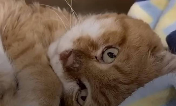 He was cared for and then taken to the shelter to begin his road to recovery and that’s where he met Sarah. As soon as she saw him and looked into his eyes she knew that she wanted to take care of this kitty.
