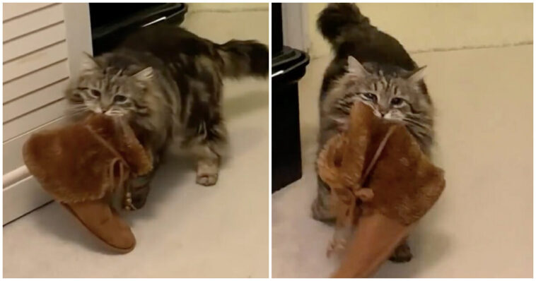 Since then, it’s been a cute little morning routine for Lulu to collect slippers for her human mom and bring them to her feet.