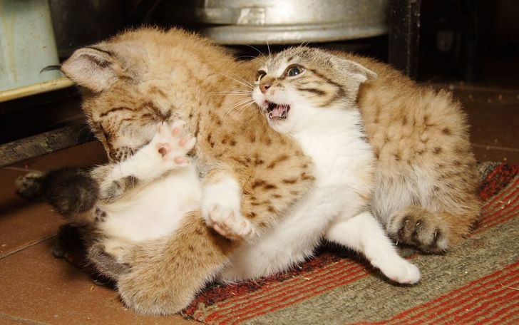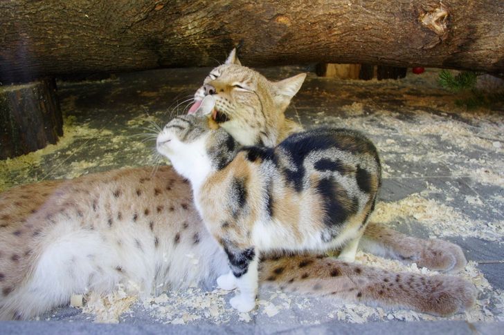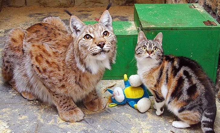 At first, they were left together for a short period of time so that they could play, but zoo workers always kept an eye on them. When the experts were sure that the lynx and the cat had gotten used to each other, they were put in one enclosure to live together.