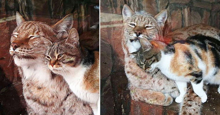 A lynx named Linda was born at the Leningrad Zoo in June 2007. Sometime later, a cat called Dusya also settled into Linda’s enclosure. Now they’ve been living together for 12 years, proving that friendship is boundless.