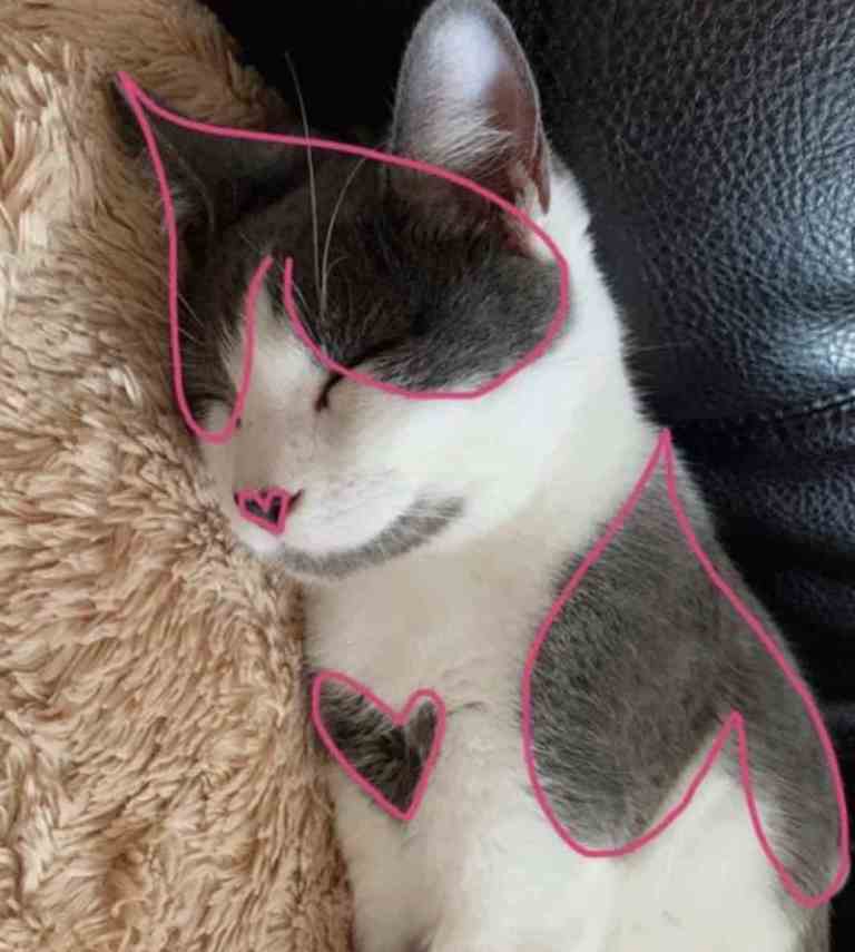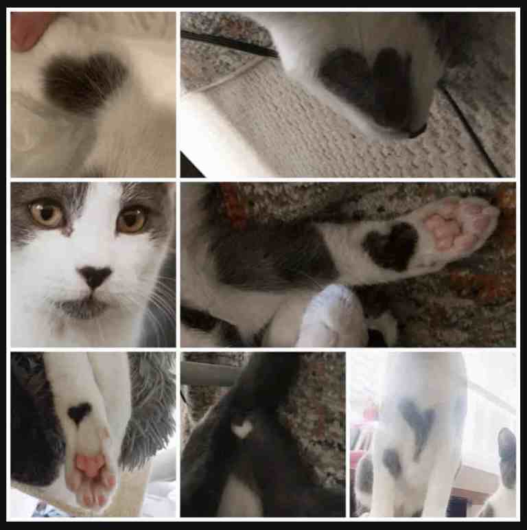 On closer inspection she found heart shapes on his nose, under his chin and beneath his paws.
