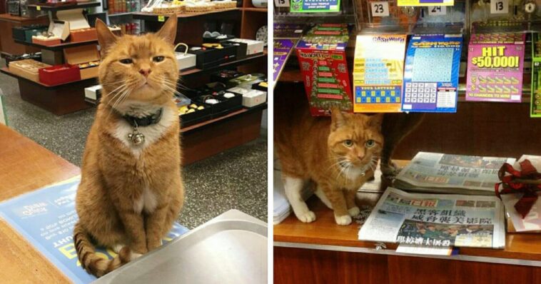 Bobo is ginger cat who is an employee in a store in Chinatown, New York. The owner found him one day and decided to give him a place to stay. This was 9 years ago, and Bobo has thanked his rescuer by working relentlessly in his store without a single day off! Now that’s dedication!