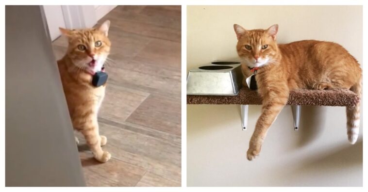 Life with cats is full of surprises. One moment they’re making you their slave, the next they’re bathing you in purrs and affection. However, an 8-year-old tabby called Gambino Bambino has just found a new way to amaze its owner.
