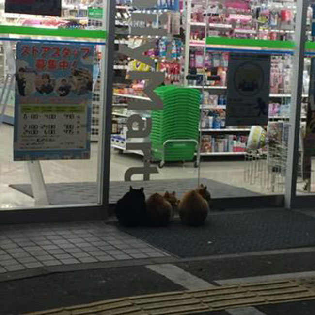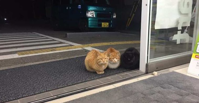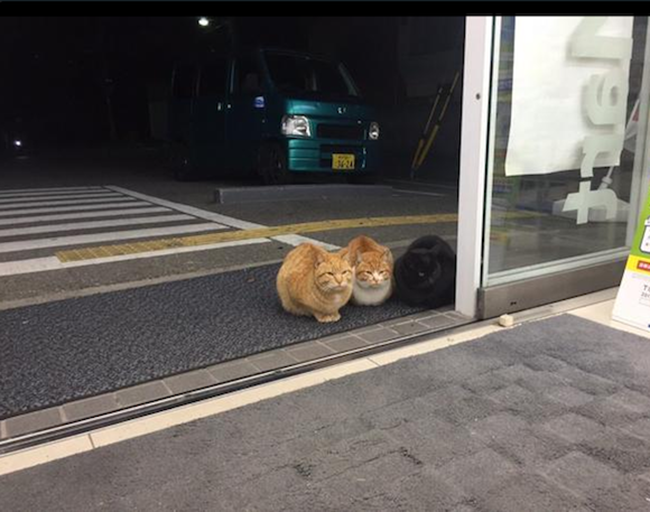 Whether they’re up to no good or not, you have to admit these kitties look so cute chilling out at convenience stores.