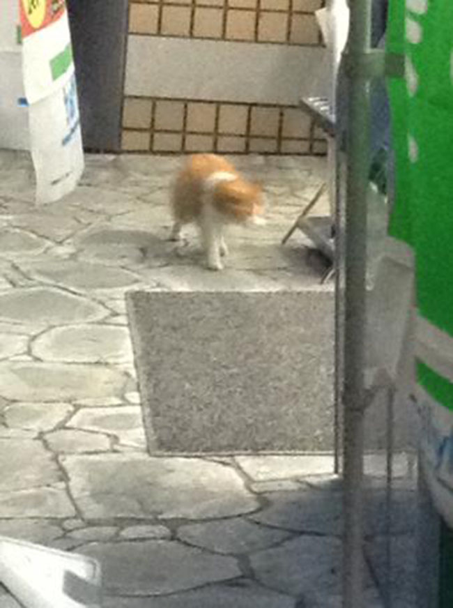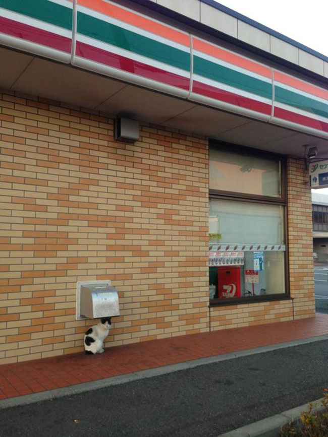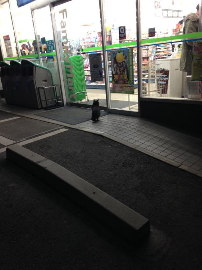 But these recent pictures may tell us otherwise, because they show that cats are also perfectly capable of showing manners and restraint. They are actually sitting politely outside convenience stores, looking perfectly content to look in from the outside.