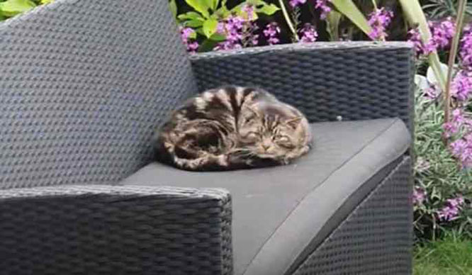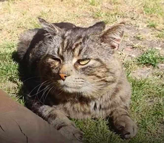 Toomey’s mom, who lives in England, kept sending her son pictures of a random cat that kept showing up in her garden.