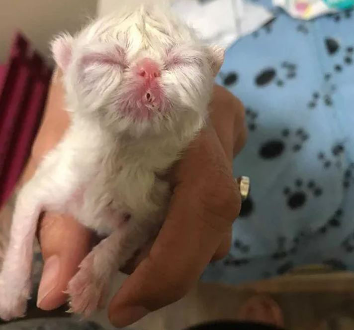 The previous owners didn’t know how to properly care for a kitten with such conditions, especially after receiving a thorough diagnosis on his health. Nevertheless, they still wanted to help him, as the newborn kitten showed a strong will to live and seemed very eager to eat. That’s when Stephanie was contacted and learned about the little guy’s situation.