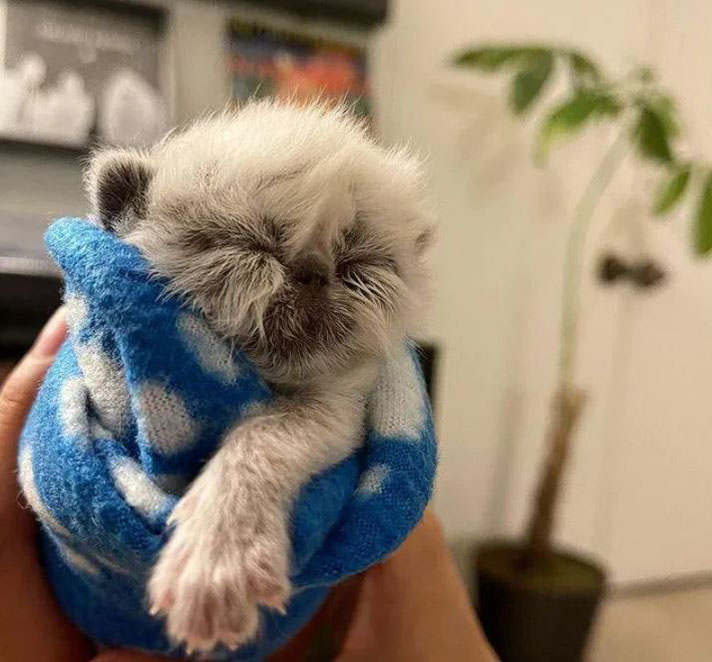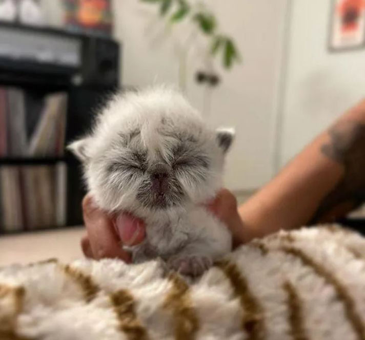 “It’s hard to describe how I felt when I first saw Grandpa. I foster day-old kittens all the time but I knew instantly that he was special. His name just came naturally with his little smushed face and calm demeanor.”