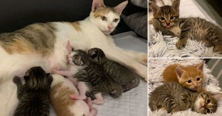 The pregnant kitty was meowing for attention. “It’s like she was asking for help for her babies and herself,” Yvonne said