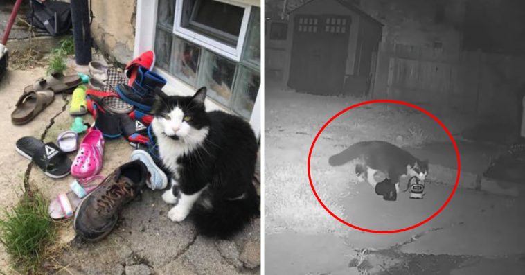 Earlier this month, BJ Ross from Altoona, Pennsylvania, created a Facebook group to address one of her pet cat Jordan’s dirty habits: stealing their neighbors’ shoes. According to WTAJ, the six-pound, black-and-white kitty is constantly going out during the night and returning home with loot in its jaws.