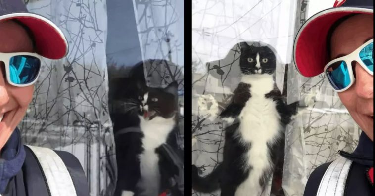 Canadian postwoman Debra Anderson — who works in Hamilton, Ontario — shared a couple of videos of a seriously riled-up kitty she often encounters on her route. As soon as the animal hears Anderson outside, it jumps straight at the window and starts frantically hissing at the woman, pouncing at the glass.