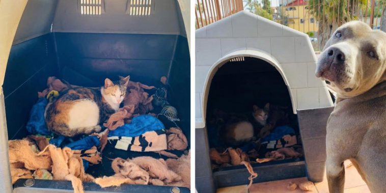 Below the puppy’s tender opinion, the cat gave birth to 2 beautiful kittens.