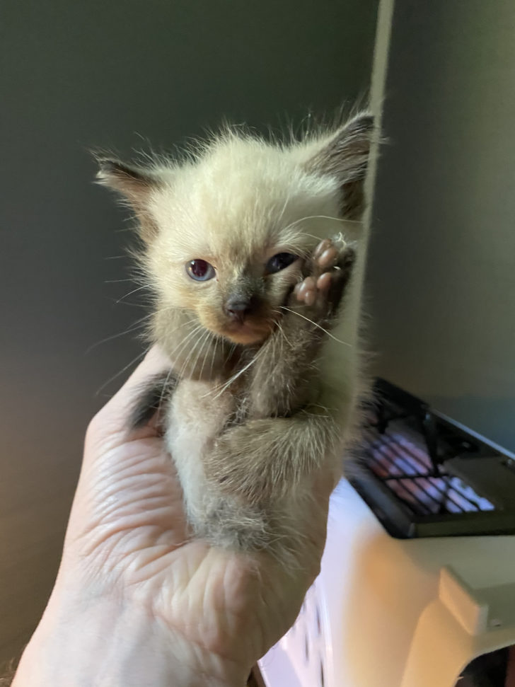 But in November, he was finally able to use his long monkey arms (LOL) to snag 3 little Siamese cuties!