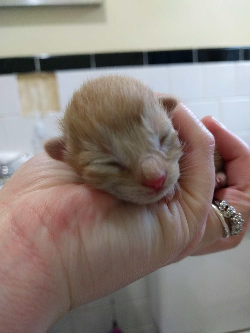 The third kitten was a ginger ball of fur, and he inherited the cute little bobtail from his mommy!