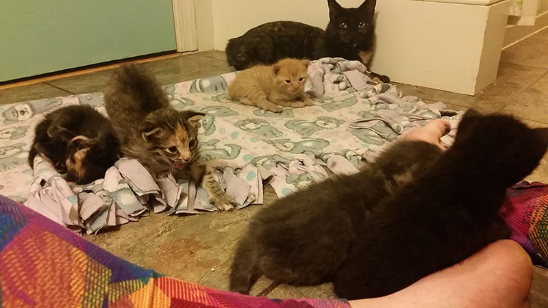 The fourth one was an adorable tortoiseshell-tabby (or torbie for short).