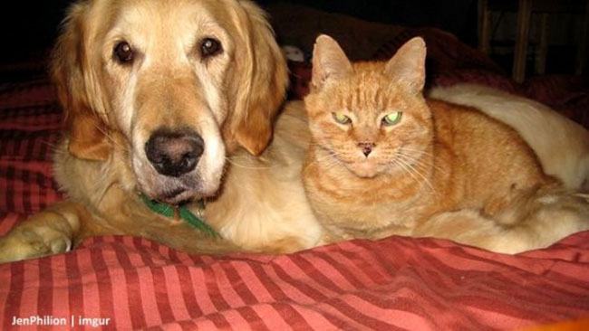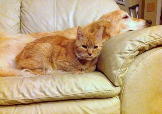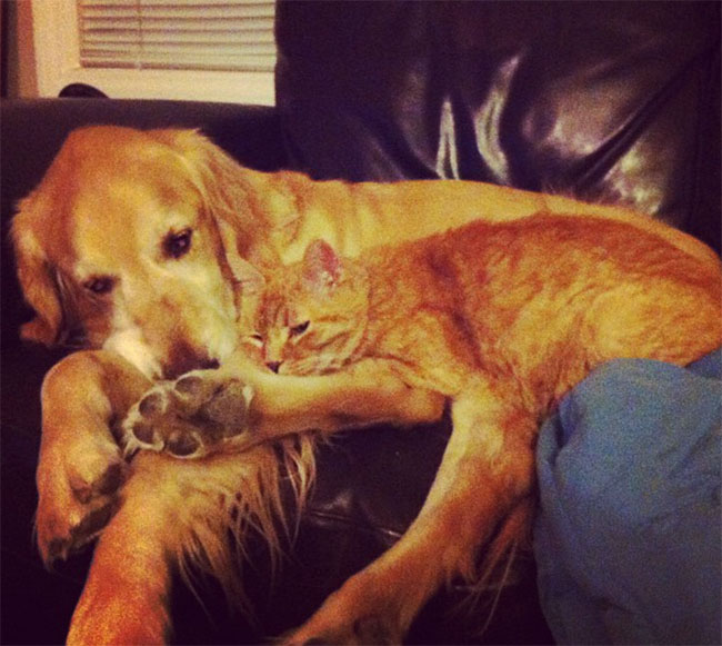 Forsberg the golden retriever and Ginger the tabby used to lean on one another for eight years and a half. They kept each other’s company when their owners are not at home, they snuggled up most of the time and they shared the sweetest moments of their lives together. They were both so happy, until thyroid cancer suddenly took Ginger away at age 15.
