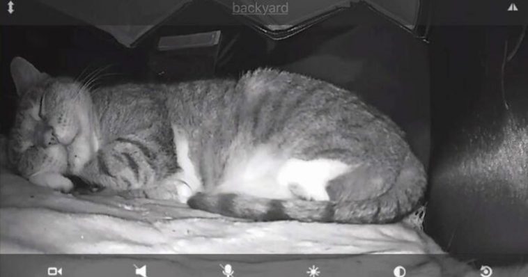 After installing night vision camera the family ended up snapping cute pictures of the cats sleeping