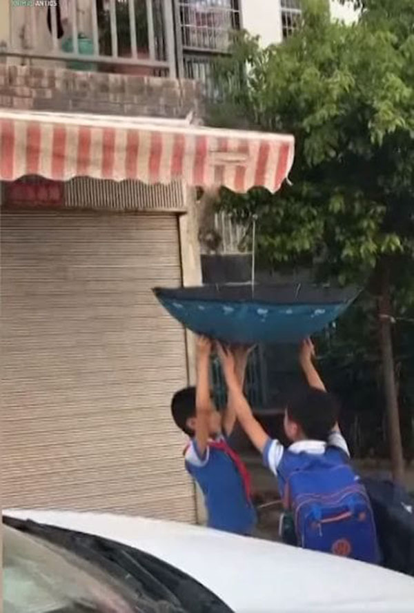 The video has now more than 8 million views and netizens are praising the two kids for their heroism and intelligence.