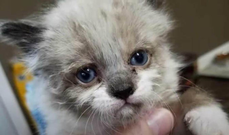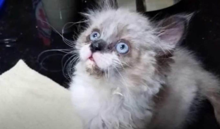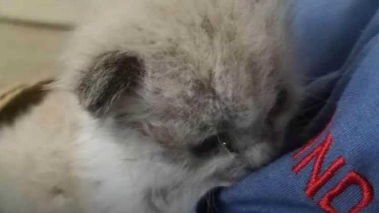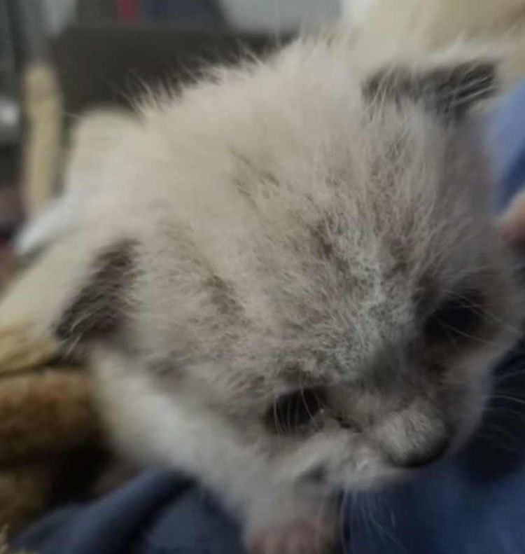 “I was heading to my service van to go to my first call for work when I heard crying.” He walked over to get a closer look and saw a tiny ball of fur hiding in some tall weeds and wailing at the top of his lungs.