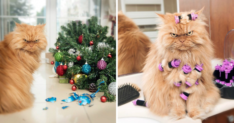 If Tardar Sauce (better known as Grumpy Cat) is grumpy, then the Persian cat Garfi is something closer to “angry” or “plotting to assassinate you.” Imagine waking up at 2AM to that stony glare with him sitting on your face. Creepy, right?