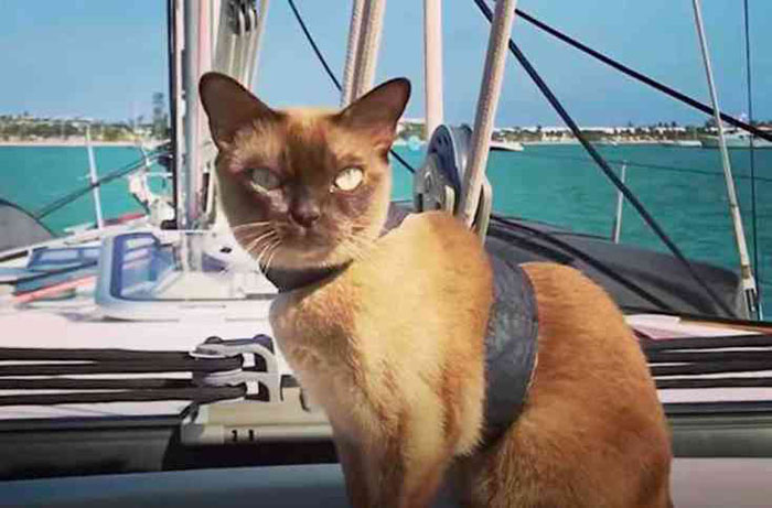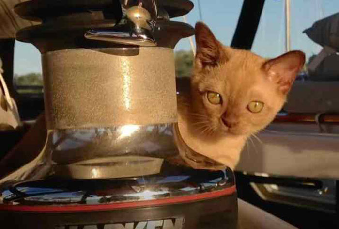 At the time they didn’t have a pet but before long thought that a feline friend would make a good sailing companion and a valuable part of the family. And they couldn’t have found a better cat that would adapt to their new lifestyle.