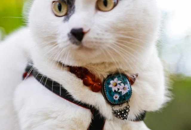 When she was dying, she asked her husband to make a collar for a cat from her beads. the man fulfilled the last will of his wife.