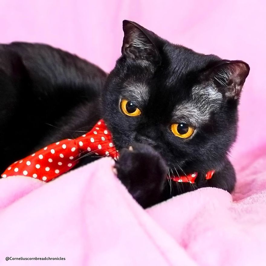 Cornelius is really a sweet and happy cat, he has a family that loves him, and brothers with whom he has fun all the time. The cat with the white eyebrows certainly has a great life.