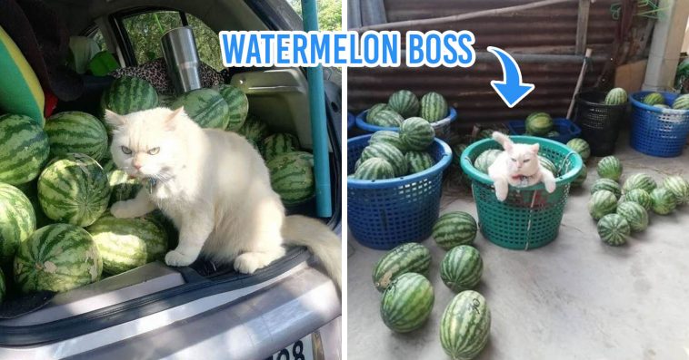 The more grumpy the cat is, the better. Simply have a look at this hairball called Pearl, an expert cat guardian from Thailand who has been looking after a watermelon farm for nearly 6 years. Pearl’s superpowers lie in his ability to send shivers up the spine with dazzling looks.