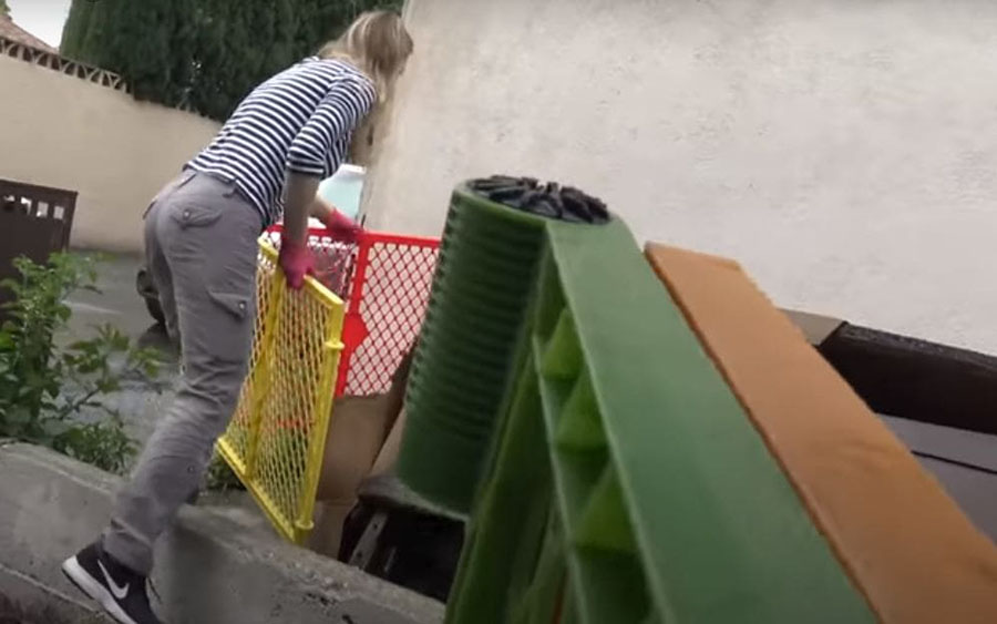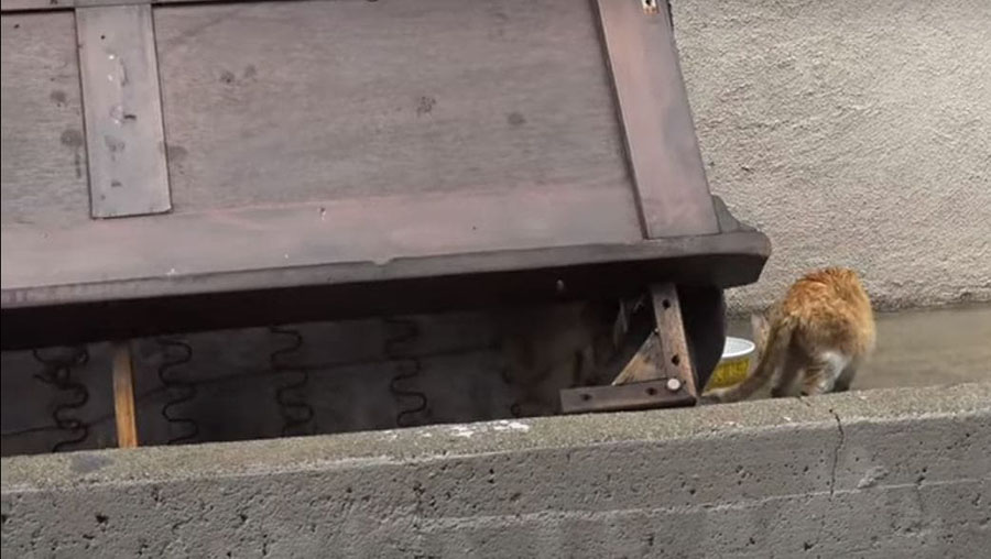 After the mother cat was taken away, the rescue team began to move the kittens out of the rotting couch. Without any information about the age of the kittens, they put fences around to prevent the cats from climbing out of the couch. They started to unpack the front wood panels. From the side gap, they could see a head sticking out. But since it couldn’t show clearly the condition of the cats, the staff decided to reach in and take the cats out.