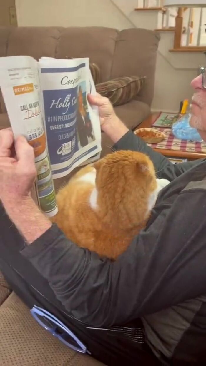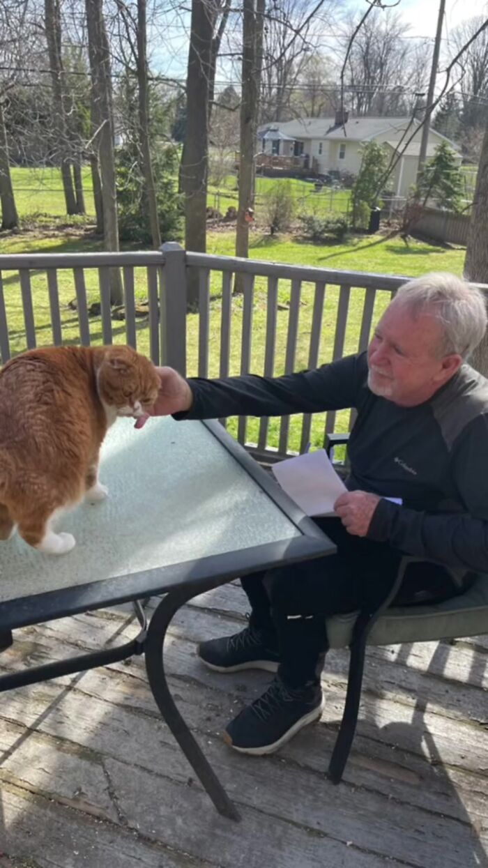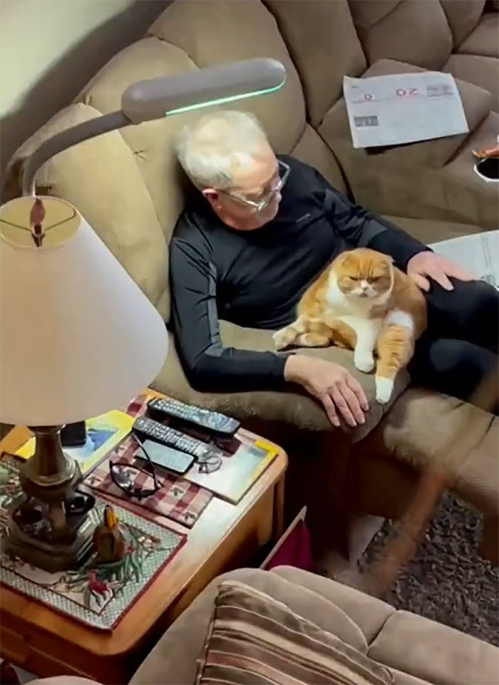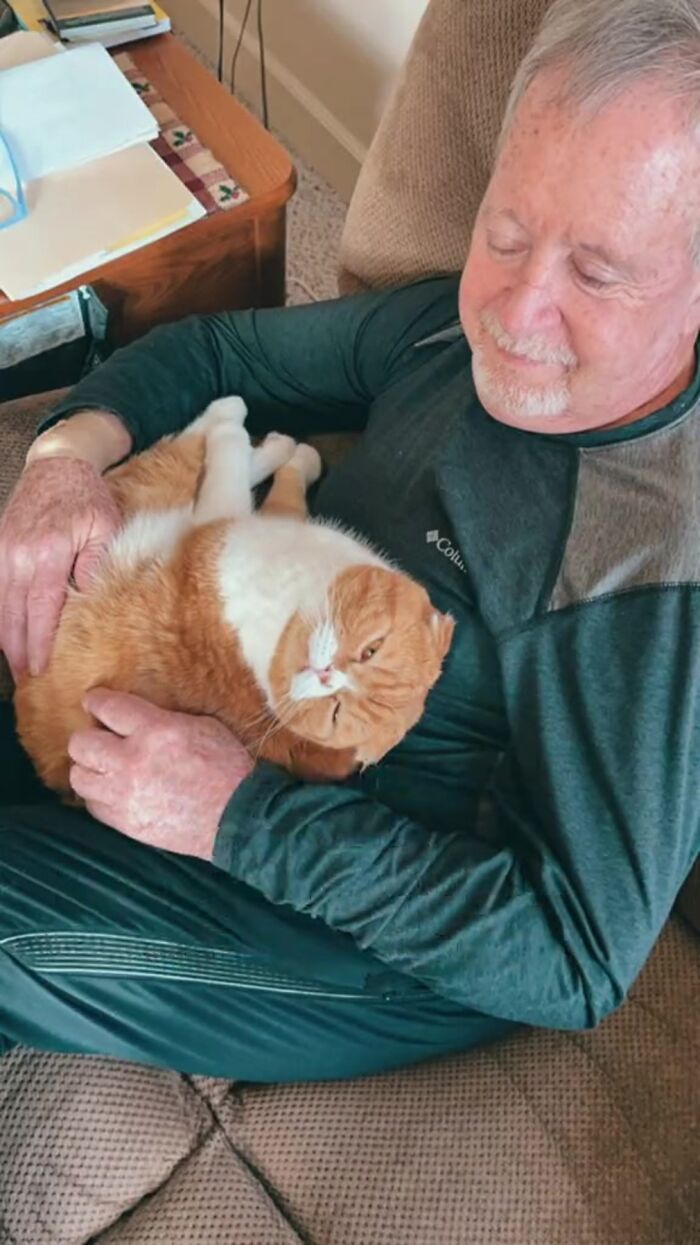 After her best friend, who also happens to be her father, was diagnosed with bone marrow cancer, Kelly Nugent decided she needed to be there for him and help him go through treatment, so she packed her stuff and her two Scottish Fold cats and moved from Miami to New York. She thought she was going to care for her dad, but one of her cats with the adorable name Sweet Potato, or simply Tato, took over and hasn’t left his grandpa’s side ever since.